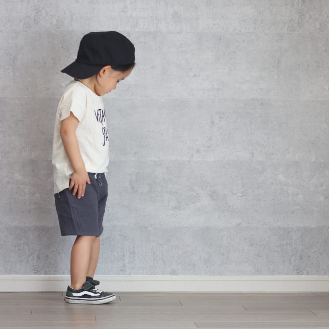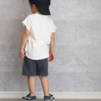 膝上の丈感と細身シルエットが男の子らしい大人服のようなボーイズショートパンツ Tシャツ合わせはもちろんのことキレイめなシャツやパーカーとの相性も抜群。