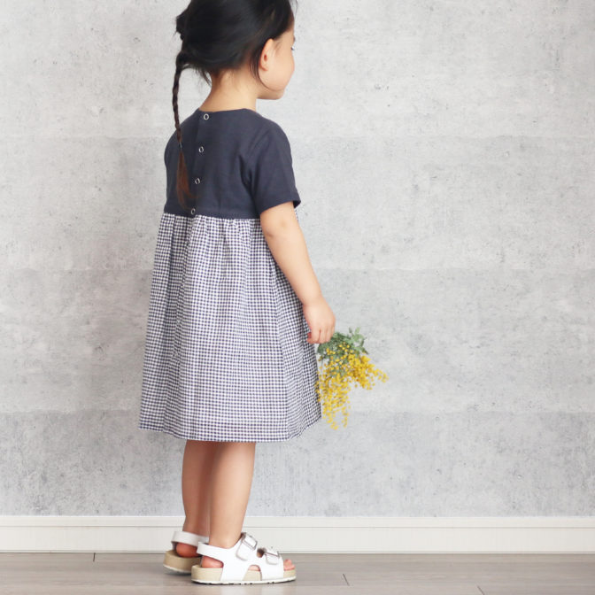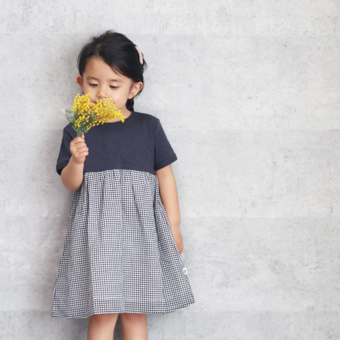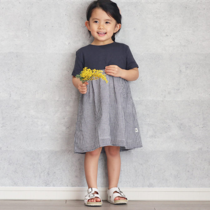 ガーリーの王道ギンガムチェックを胸元切替と同系色のネイビーで甘すぎずシンプルに上品に仕上げたワンピース。